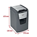 | Name | Rexel Optimum Auto+150M 150 Sheet 80 gsm P-5 Jam-Free Auto Reverse Function Micro Cut Shredder |