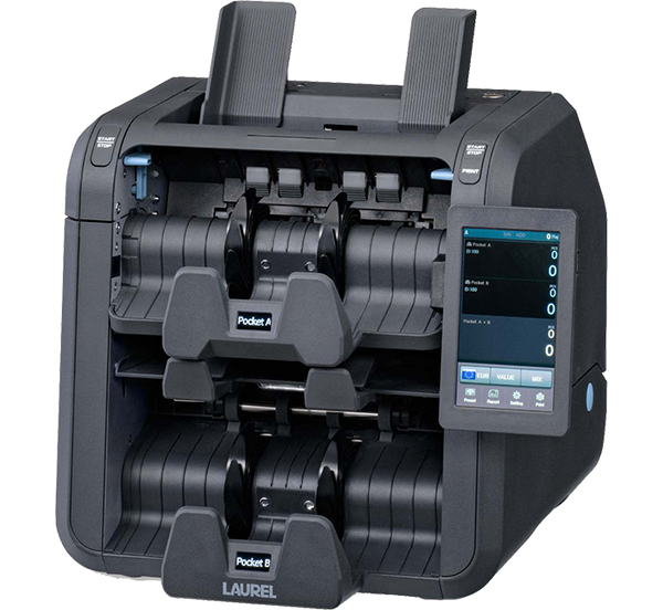 The Laurel X10 Note Counter Machine is an advanced solution designed for high-speed and accurate currency counting in banks, retail stores, and financial institutions. This powerful money counting machine streamlines your cash management process with precision and efficiency, ensuring every note is thoroughly counted and sorted. Featuring an intelligent fitness sorter, the X10 detects counterfeit bills and sorts notes based on quality, making it ideal for businesses that require reliable banknote authentication and sorting. The user-friendly interface provides quick access to multiple currency detection modes, allowing operators to handle high volumes with minimal effort. With its robust cash processing capabilities and durable construction, the X10 is built to withstand rigorous daily use. Experience seamless note sorting, reduced errors, and enhanced productivity with this top-tier Laurel note counter. Optimize your cash handling with the X10 and ensure your operations remain secure, fast, and accurate every day.