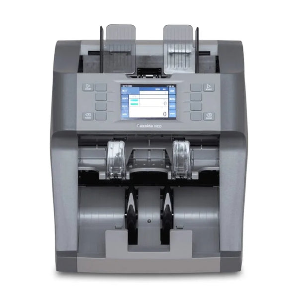 The Cassida Neo-Efficient Cash/Bill Counter (SKU: NEO) is the ultimate solution for fast, reliable, and accurate currency counting in busy retail and business environments. Designed for high-speed bill counting, this advanced machine delivers precision and efficiency, saving you time and minimizing human error. Whether you manage a bank, retail store, or any cash-heavy operation, the Cassida Neo ensures every count is effortless and dependable. The user-friendly interface and robust construction make it ideal for daily use, while its advanced counterfeit detection technology guarantees secure and trustworthy results. Enjoy seamless integration into your cash management workflow with this professional cash counter. The Cassida Neo is engineered for durability, supporting continuous operation and offering batch counting features for organized cash handling. Experience the power of a high-capacity currency counter designed to streamline your business and safeguard your assets. Discover why the Cassida Neo is a top choice for those seeking a combination of performance, security, and convenience in cash processing equipment.