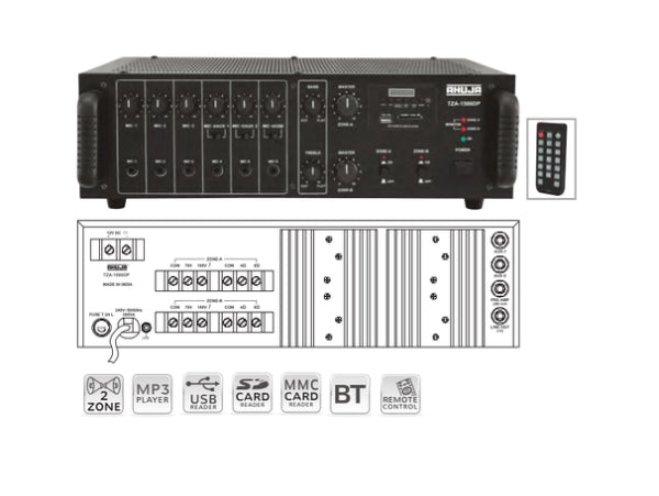 Enhance your audio experience with the Ahuja TZA1500DP PA Amplifier. This powerful device with SKU TZA1500DP features USB connectivity for seamless music playback, 6 microphone inputs allowing multiple users to...