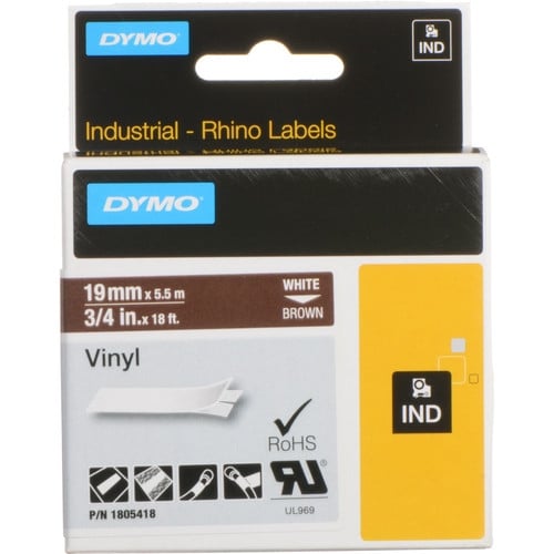 | Name | Dymo Rhino 3/4" Brown Vinyl Labels (White Print) |