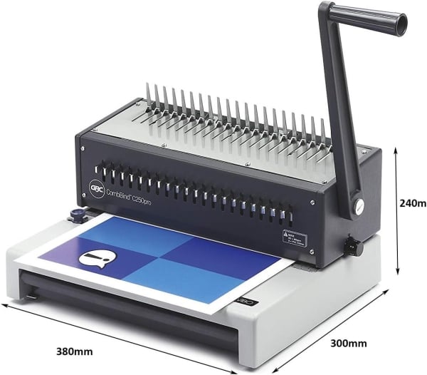 Upgrade your binding capabilities with the GBC CombBind Comb Binder C250Pro. This advanced binder is perfect for creating professional-looking documents with ease. Whether you're binding reports, presentations, or manuals, this binder offers convenience and reliability for all your binding needs. The C250Pro features a compact design that fits well in any office setting. With its effortless operation, you can quickly bind up to 450 sheets with a 51mm comb.